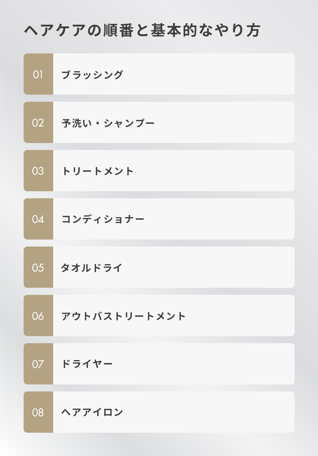 正しい順番と方法を学ぶことで美しい髪の毛を保ちやすくなるので、それぞれの手順をしっかり確認しましょう。