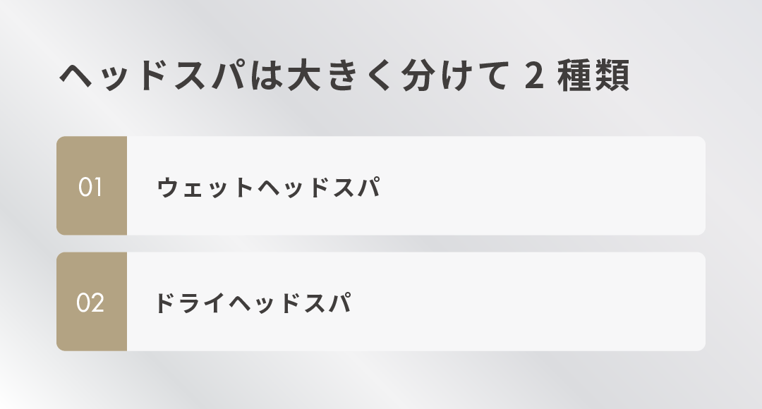 ヘッドスパは、大きく以下の2種類に分けられます。
