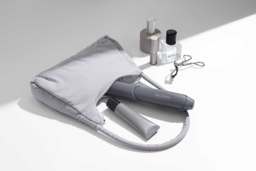SALONIAのコードレス ストレートヘアアイロンは、持ち運びに便利なコンパクトサイズが特徴です。バッテリーを取り外せる仕様なので、飛行機への持ち込みも可能です。モバイルバッテリー機能もあるため、スマホの充電切れ対策としても使えます。