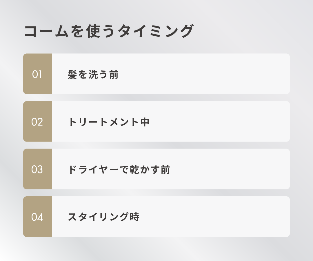 トリートメント中にコームを使う際は、以下の手順で行うのがおすすめです。