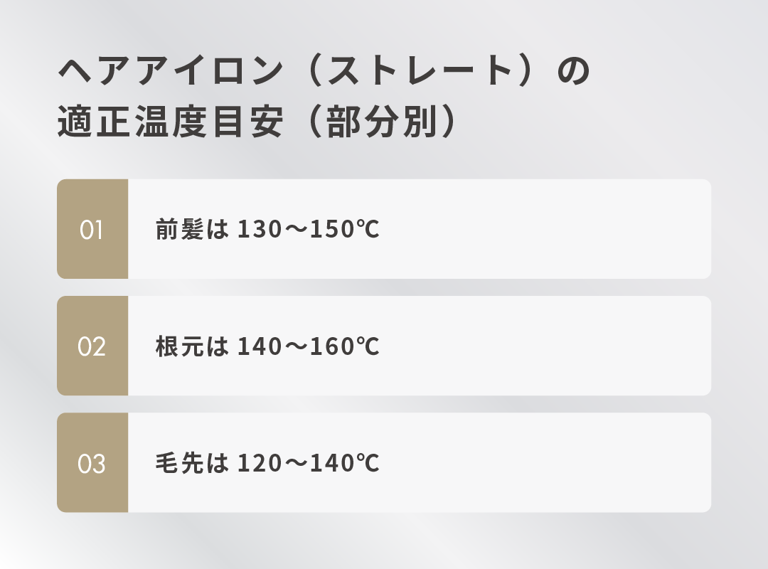 ヘアアイロン(ストレート)の適正温度目安(部分別)