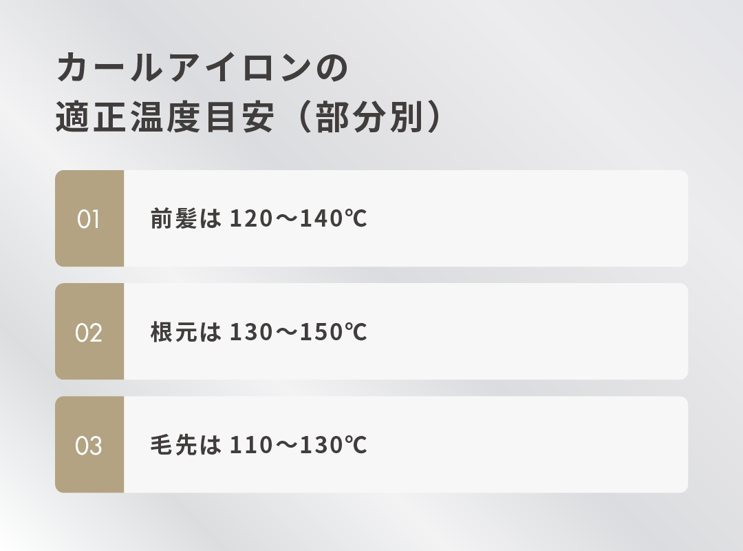 カールアイロンの適正温度目安(部分別)