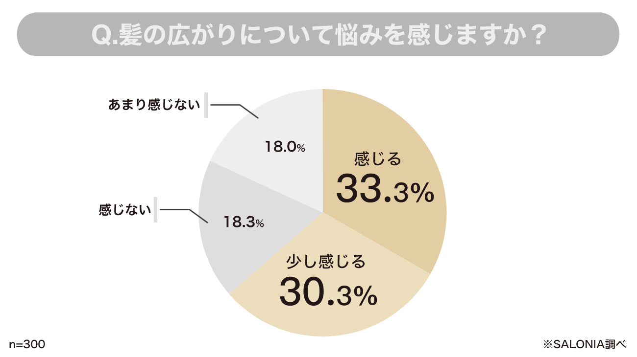 上記のような悩みをお持ちの人は多いのではないでしょうか。SALONIAで実施した女性300人へのアンケート調査では、髪の広がりに悩んでいるのは約63.6%もいることがわかっています。