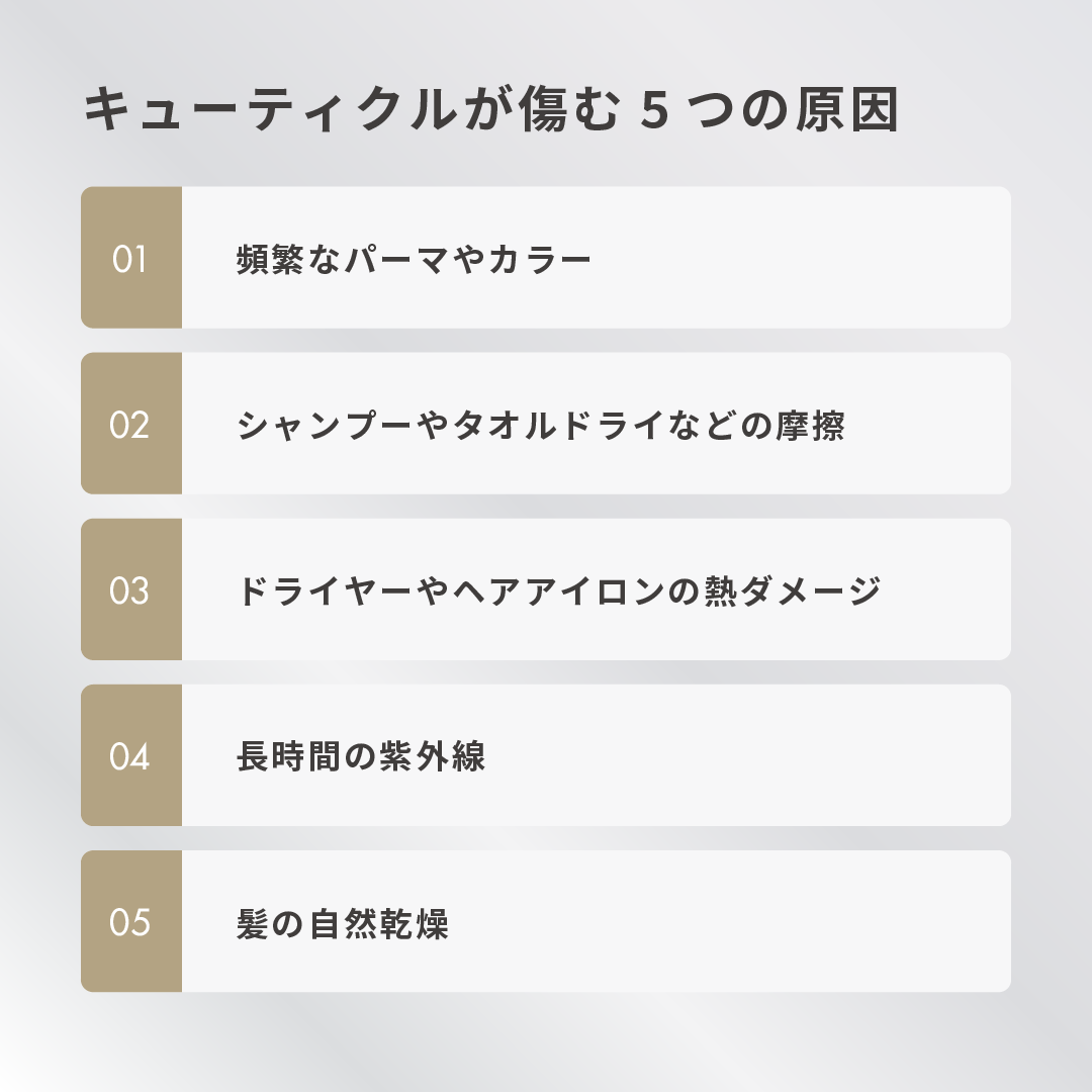 キューティクルが傷む原因は以下の5つです。