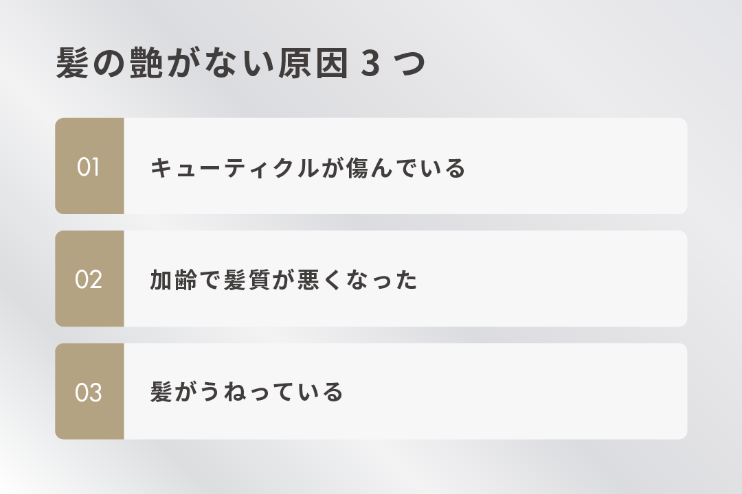 髪の艶がない原因は、以下の3つが考えられます。