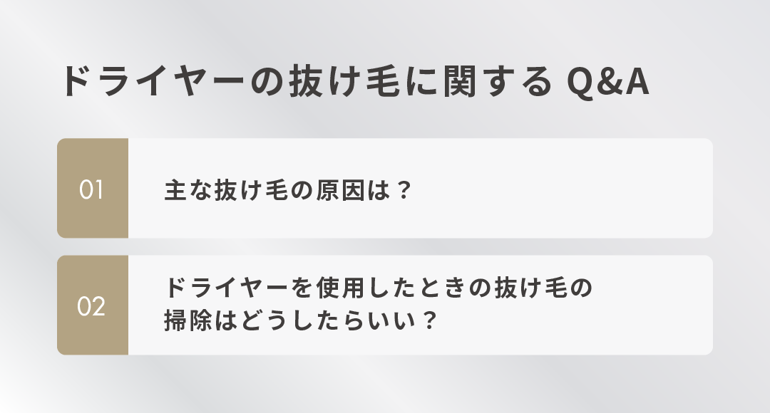 ドライヤーの抜け毛に関するよくあるQ&Aは、以下の通りです。