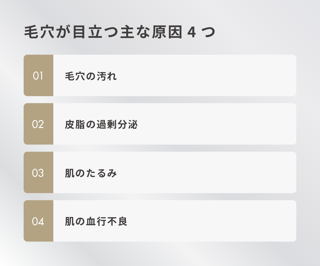 毛穴が目立つ主な原因は以下の4つです。