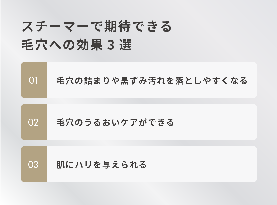 スチーマーを使うことで期待できる毛穴への効果は以下の3つです。