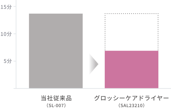 ※1 自社測定 / 毛束との距離12cm / SAL23210:ノズルあり・TURBOモード / SL-007:ノズルなし・Hight / 当社従来品SL-007との比較 / 使用環境(温度・湿度など)や、個人差で、効果は異なります。